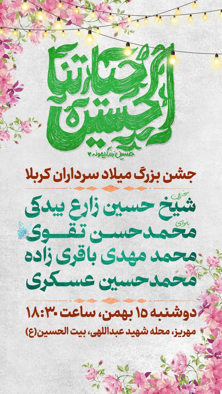 🗓 اطلاعرسانی #دعوت_از_هیئت 🌸مراسم #جشن بزرگ میلاد #سرداران_کربلا